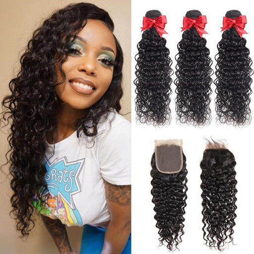 3 Bundles Water/Natural Wave With 4x4 Lace Closure